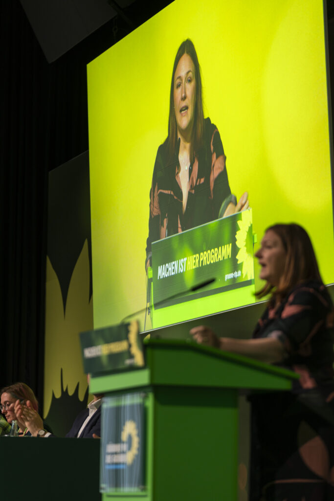 Landesvorsitzende Natalie Cramme-Hill (Listenplatz 9 und Direktkandidatin im Wahlkreis Trier) bedankte sich im Namen der Programmgruppe und der Antragskommission stellvertretend bei den Delegierten für die enorme gemeinsame Leistung bei der Bearbeitung der 472 übernommenen oder modifizierten Anträge – ein starkes Zeichen für Zusammenhalt, Beteiligung und grünen Gestaltungswillen.